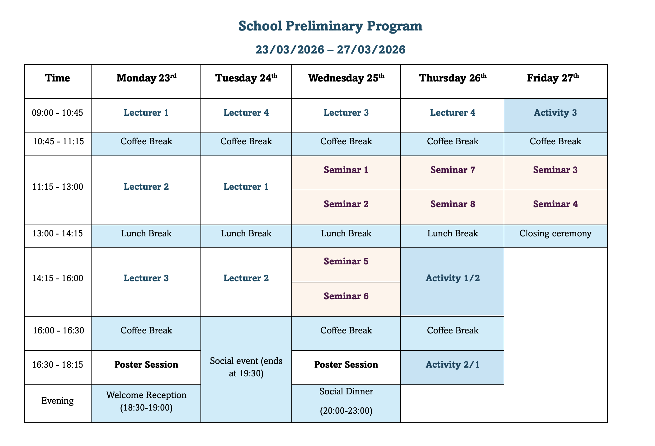 Selection criteria: in addition to the academic qualifications and research background of the applicant, the Organizing Committee will consider the coherence of their motivation with the aim and scope of the School and the potential benefit to their research activity and career progression.